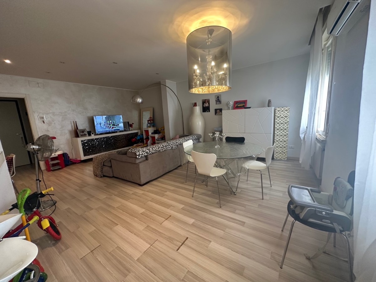 In centro storico appartamento di circa 100 mq, ristrutturato nel 2010 con ottime finiture, posto al terzo ed ultimo piano con ascensore. L’immobile ? composto da ingresso, ampio salone, cucinotto arredato, disimpegno, 2 camere, bagno, ripostiglio. Dotato di cantina e possibilit? di garage doppio. Molto luminoso, aria condizionata, porte laccate bianche.