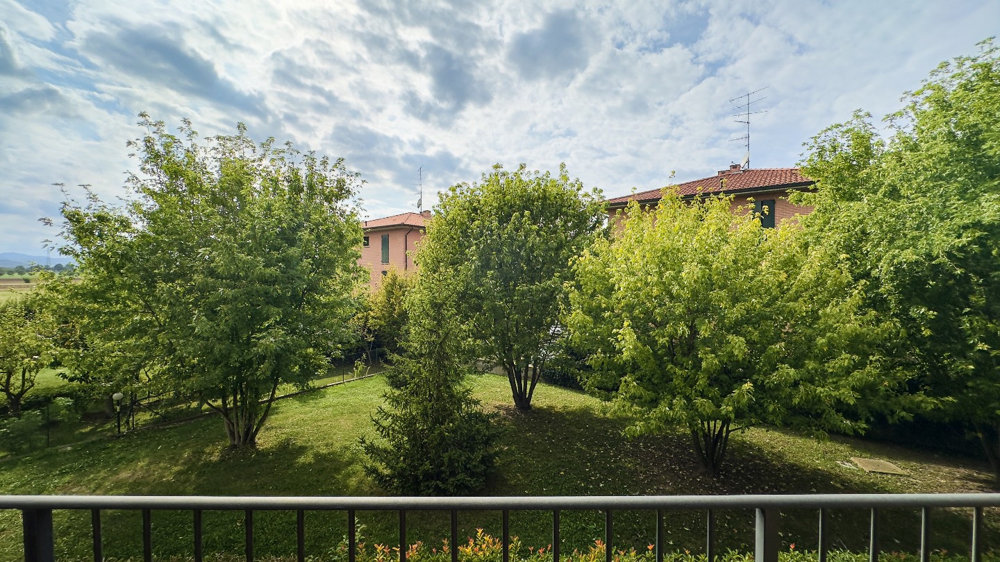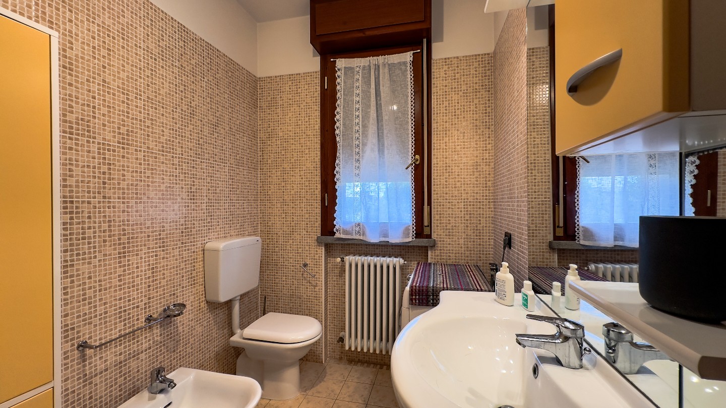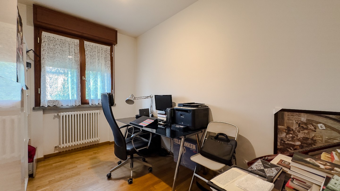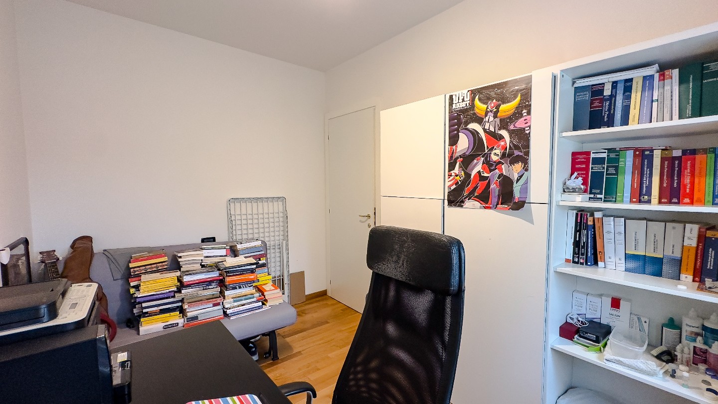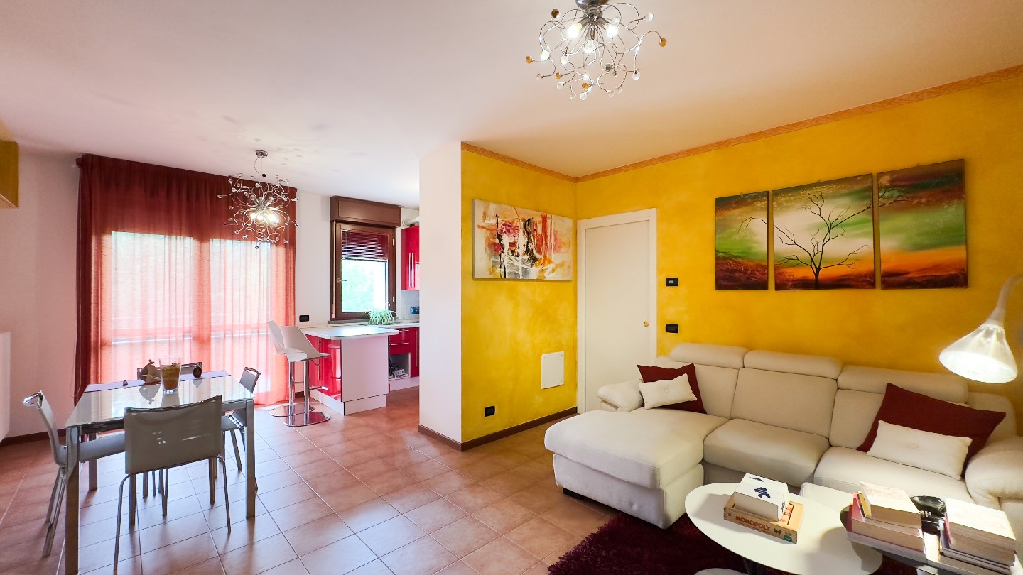 Si entra dal soggiorno di circa 30 mq, si accede all’ angolo cottura con penisola, ampia loggia abitabile con vista sul giardino condominiale e verso le colline.
