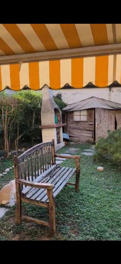 Gazebo, barbecue, pozzo artesiano per irrigazione e tenda da sole.